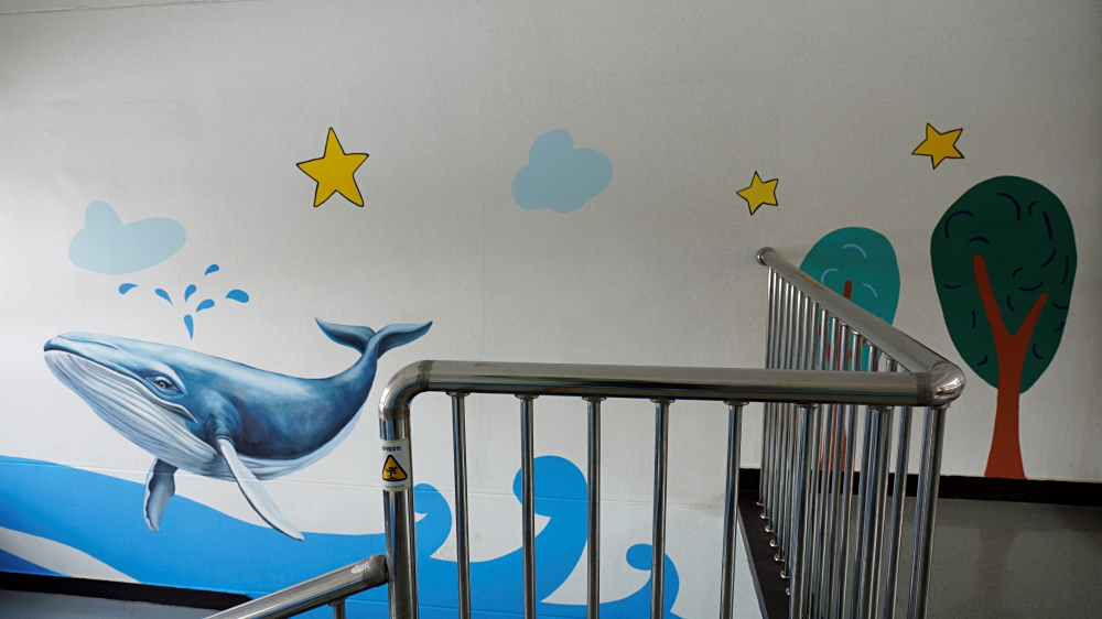 계단벽면의 고래 포토존
