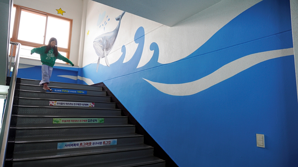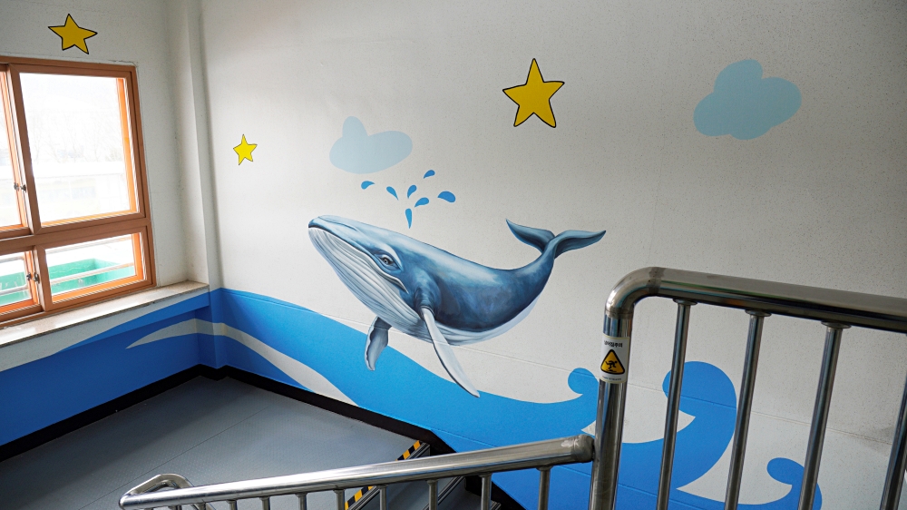 비봉 초등학교 2024계단벽면의 고래 포토존