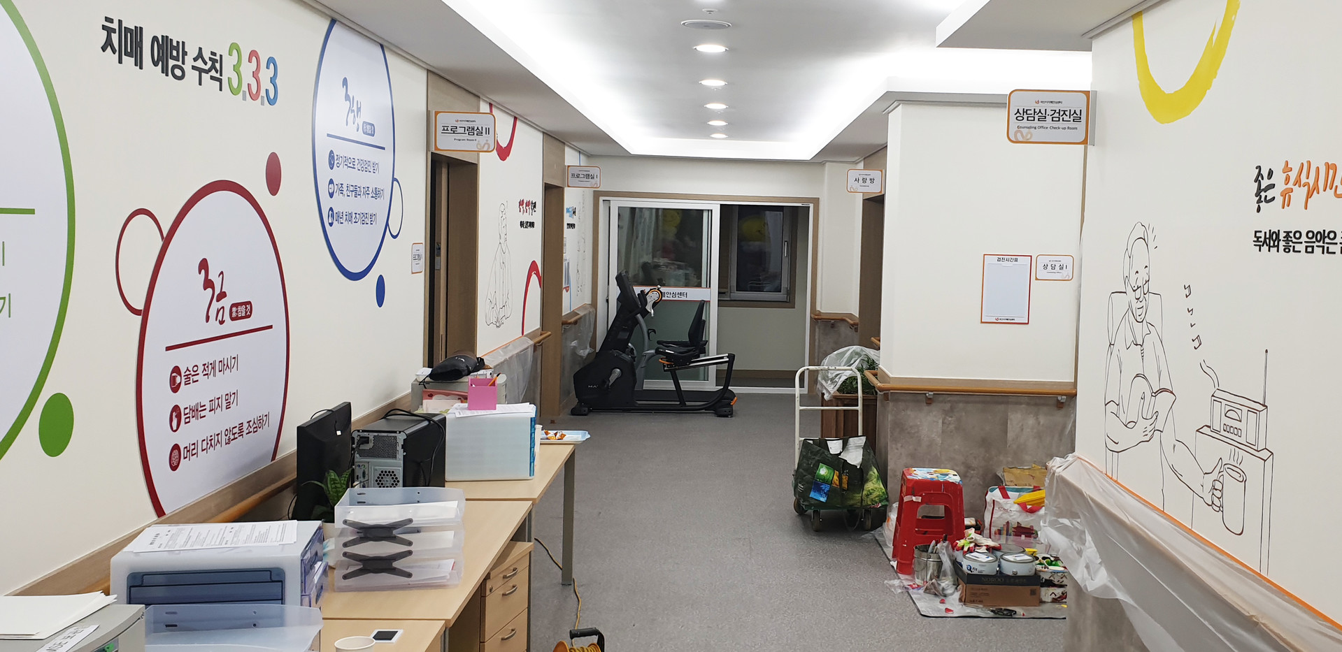 어르신들이 보기 쉽게 그림으로 그린 벽화입니다.