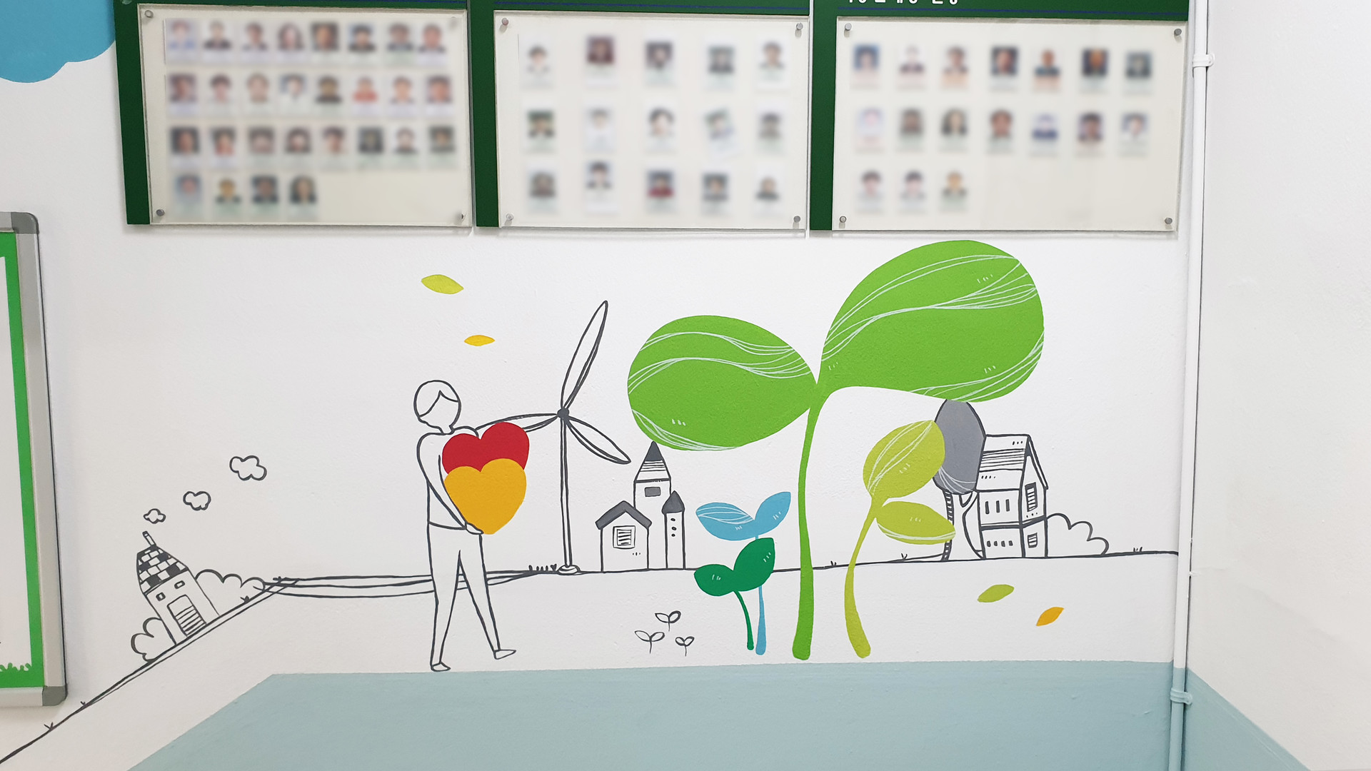 라인드로잉을 이용한 주민센터 내 건강계단 벽화