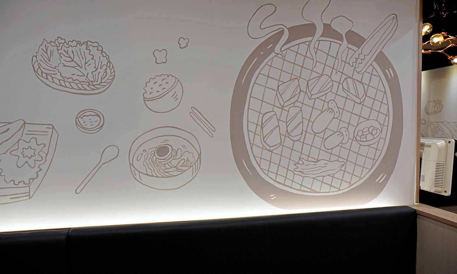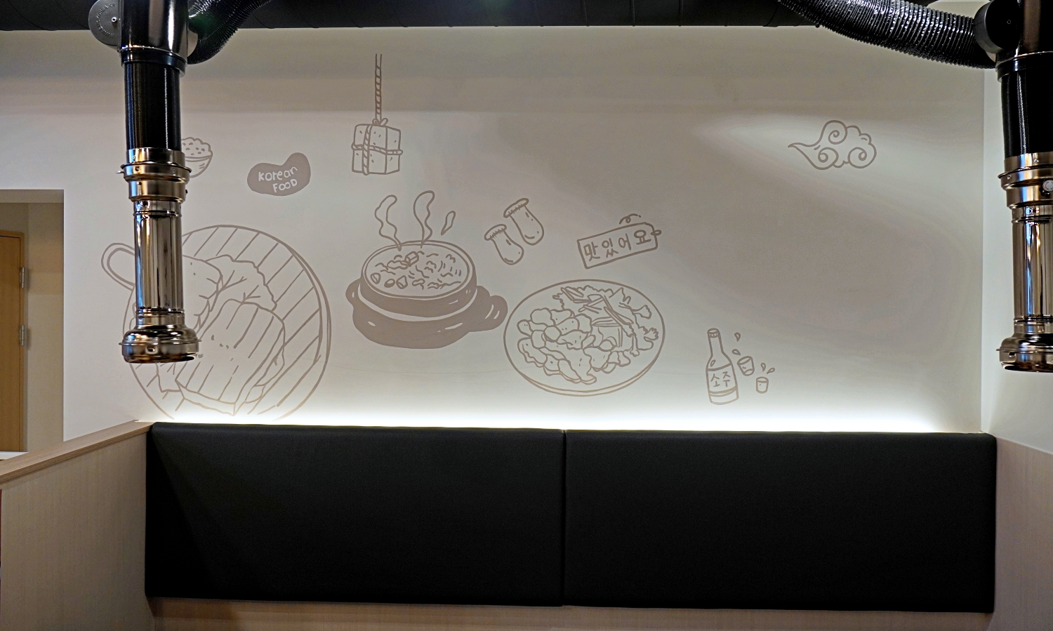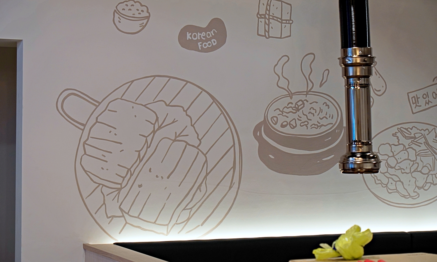 라인으로 고기와 된장찌개의 모습을 인테리어벽화로,