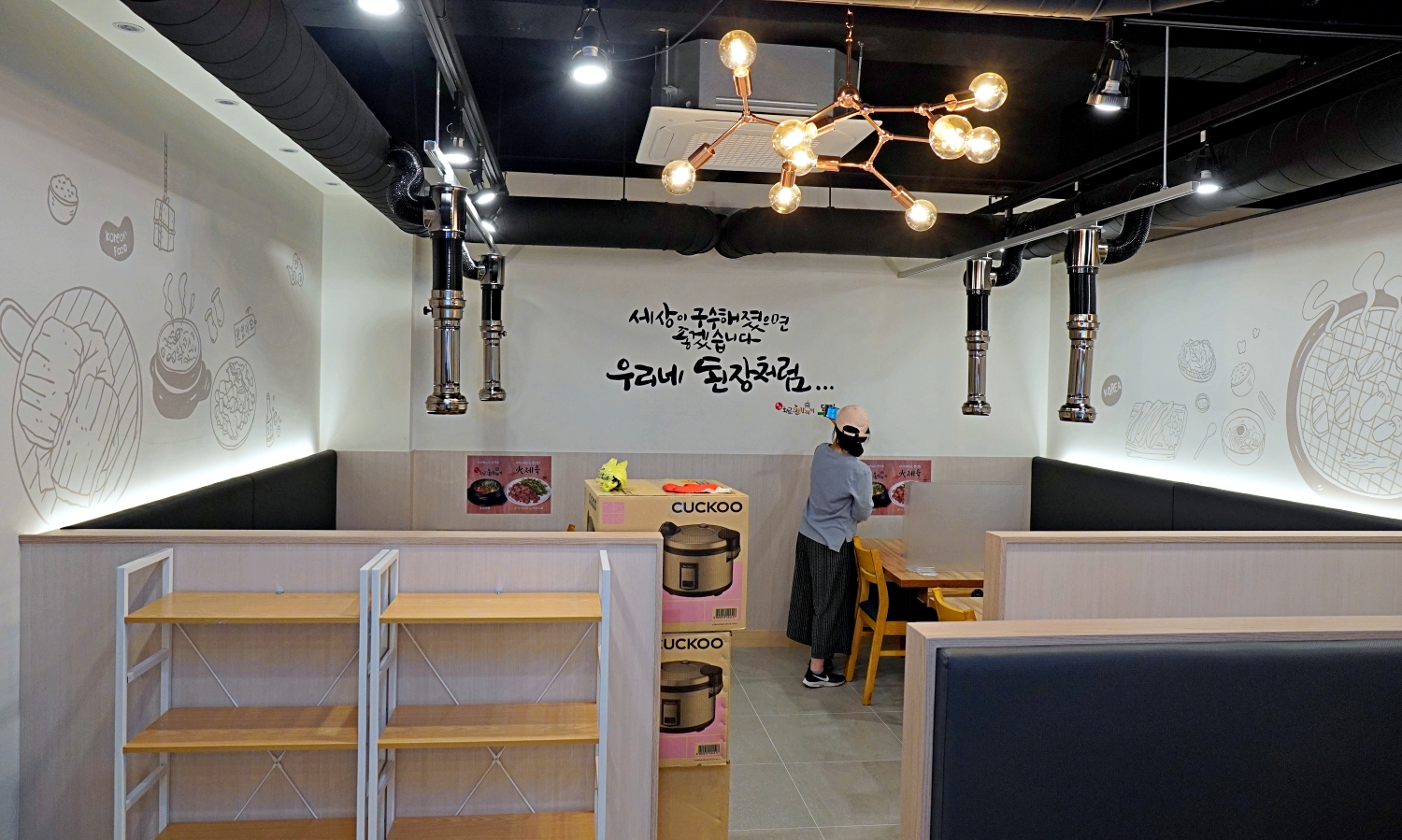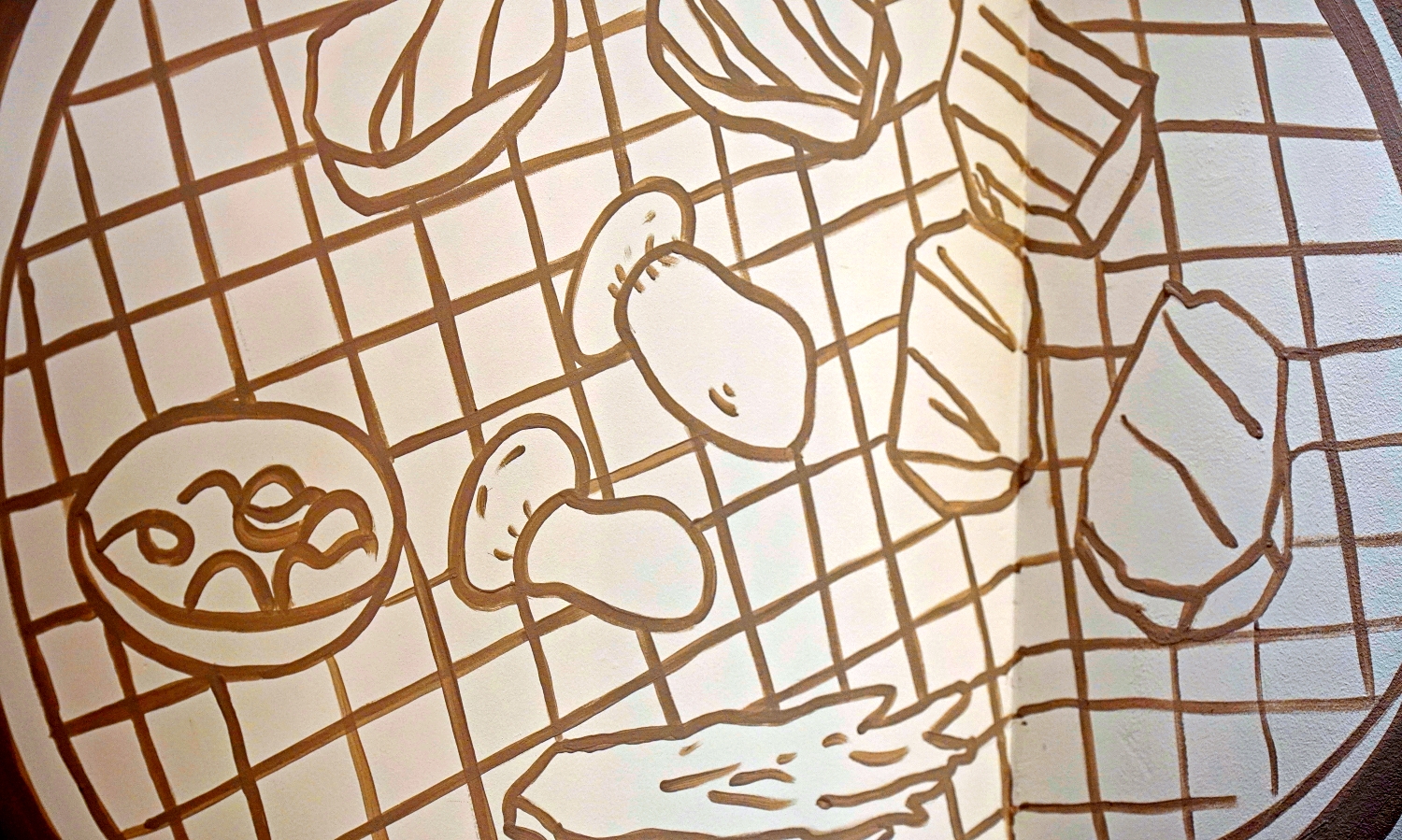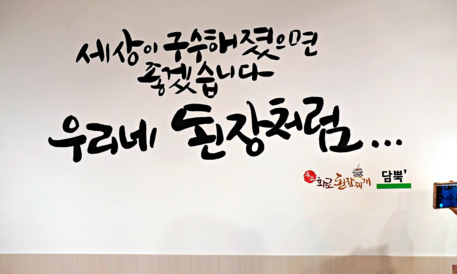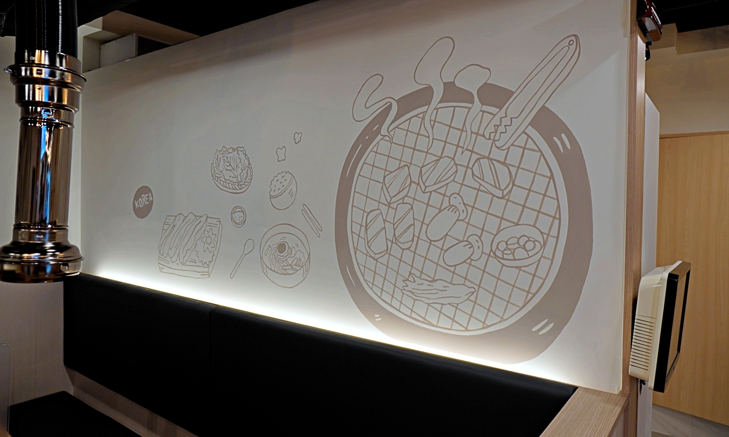 라인으로 고기와 된장찌개의 모습을 인테리어벽화로,